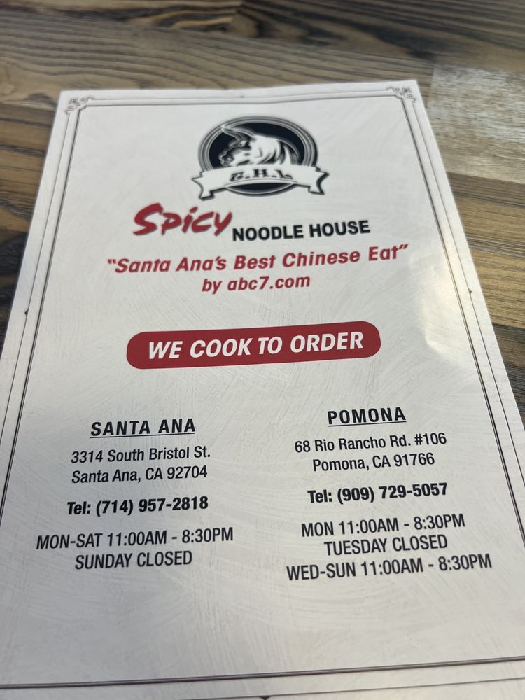 Spicy Noodle House in Santa Ana, CA offers a diverse menu of Chinese and Thai noodle dishes. With options for takeout, reservations, and vegan choices, this restaurant caters to various preferences. Customers rave about the generous portions, flavorful dishes, and friendly service. The black pepper lo mein and spicy basil chicken are standout favorites, with customizable spice levels to suit every palate. The clean and spacious setting, along with efficient service, make dining at Spicy Noodle House a pleasant experience. Don't miss out on trying the wings, spicy garlic noodles, and vegetarian Mongolian dish. Overall, Spicy Noodle House is a hidden gem for delicious and affordable Asian-inspired meals.